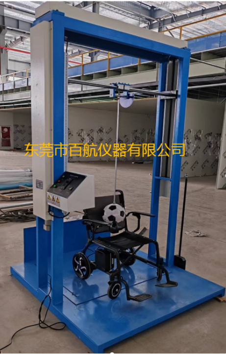 This machine is used for wheelchair backrest, hand rim, and footrest structural strength impact testing.